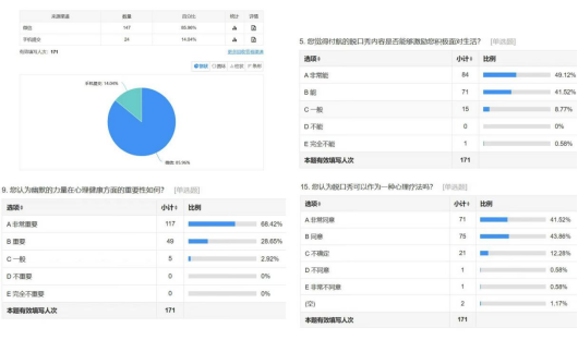 活动伊始,由院心理协会副会长张玥秋介绍了当前热门话题——付航脱口秀的最新动态,并以此背景深入解析了本次问卷调查的设计思路及填写指南。根据调查数据显示,在参与调研的学生群体中,有高达78.55%的学生认同幽默对于促进个人心理健康具有正面作用。当被问及观看脱口秀节目时所体验到的情感变化时,超过半数(56.73%)的学生称感受到了积极向上的情绪。此外,在谈及看完此类节目后对自己行为习惯或思维方式的影响时,31.92%的学生表示愿意尝试积极的生活方式来改善现状。