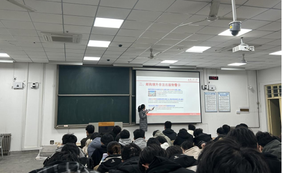 2023级全体学生在教1-101教室召开年级大会。会议由辅导员陈慧英主持,会议内容主要包括三方面:临近国家级大考和期末考试,做好考前诚信教育;法制意识培养,特别是邮购境外非法出版物的风险警示;冬季特殊时期,关注学生身体健康与心理健康,守好安全底线。