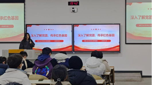 本次团课主题为“深入了解党团,传承红色基因”,主要内容为党的基础知识、党的光荣历史和传统、团的基础知识和工作重点,以及党团关系。赵欣伏雨精心准备了内容详细的PPT,以主题演讲授课的形式进行,通过层层递进的讲解,帮青年团员们再次深刻认识中国共产党、中国共产主义青年团。