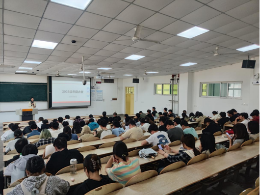 2023级全体学生在教1-102教室召开年级大会,会议由辅导员陈慧英主持。本次会议围绕"安全与成长"主题展开,通过安全教育与优秀学长经验分享,引导学生增强安全意识,明确成长方向。