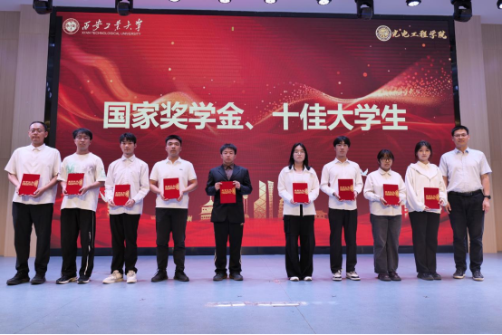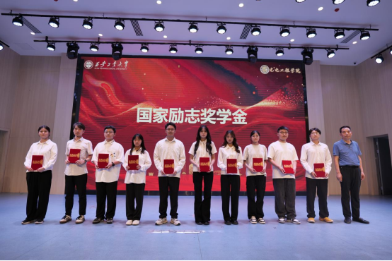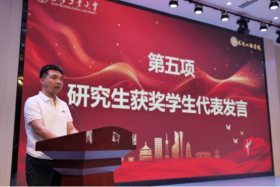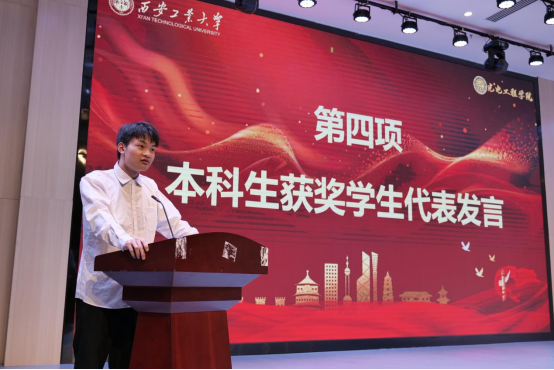 本科生获奖代表王志东分享了大学四年的成长与收获,感恩学院的培养、老师的付出和同窗的鼓励,表明继续奋斗、勇担使命的信心和决心;研究生获奖代表胡驰结合科研经历,用三个关键词“热爱”“坚持”和“担当”分享成长感悟,号召同学们牢记使命、深入精研、勇攀高峰。两位光电学子的真挚发言引发强烈共鸣,现场频频响起热烈掌声。