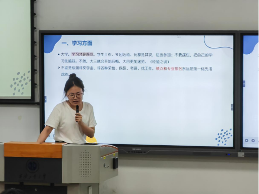 就业指导暨经验分享会。本次分享会邀请了新东方资深讲师李楠以及2021级就业大使马状、姜亚辰担任主讲嘉宾。活动吸引了含受助学生在内的近150名学生踊跃参与。
