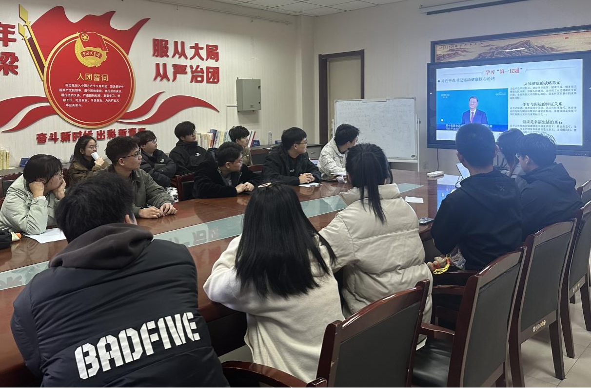 会议伊始,全体党员集中学习了习近平总书记关于运动健康的核心论述,领悟了建设体育强国、健康中国,根本在于增强人民体质、保障人民健康,深刻阐明了人民健康在全面小康与全面现代化进程中的核心地位。随后,刘慧楠围绕运动的多维价值展开分享,通过图文案例展示出,运动是个人强身健体的关键途径,是促使公共体育服务完善的主渠道,是国家提升文化软实力的重要平台。讨论环节,曹琦表示:“此次学习让我对运动健康的意义有了更深刻的理解,接下来我会从自身做起,坚持体育锻炼,同时积极向同学、家人传播健康理念,把学习成果转化为带动身边人参与运动的实际行动,为健康中国建设贡献党员力量。”
