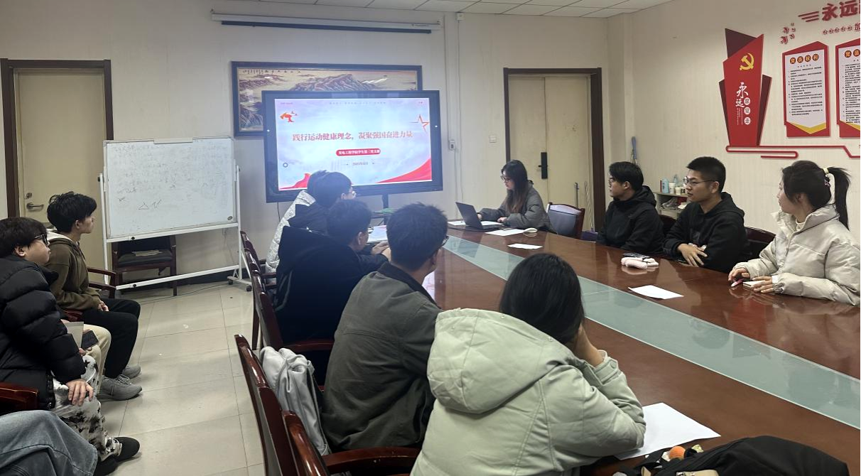 学生第三党支部开展“践行运动健康理念,凝聚强国奋进力量”主题学习会,会议由刘慧楠主讲,全体党员参加。